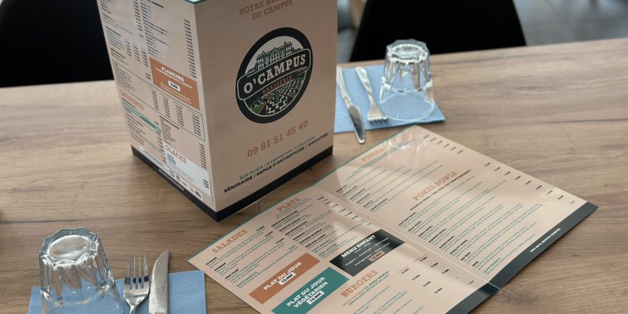L’Agence Vistacom accompagne la Brasserie O’ Campus sur le domaine universitaire de Grenoble, dans la réalisation de ses cartes imprimées. Afin de mettre en avant la cuisine « maison » de cette table incontournable sur le Campus de Grenoble , nous avons travaillé sur la réalisation d’une carte personnalisée aux couleurs de notre client, légère pour les […]