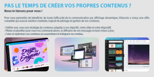 « Digitalisez votre établissement sans vous occuper de la gestion du contenu grâce à notre solution d’affichage dynamique « VistaScreen ! »